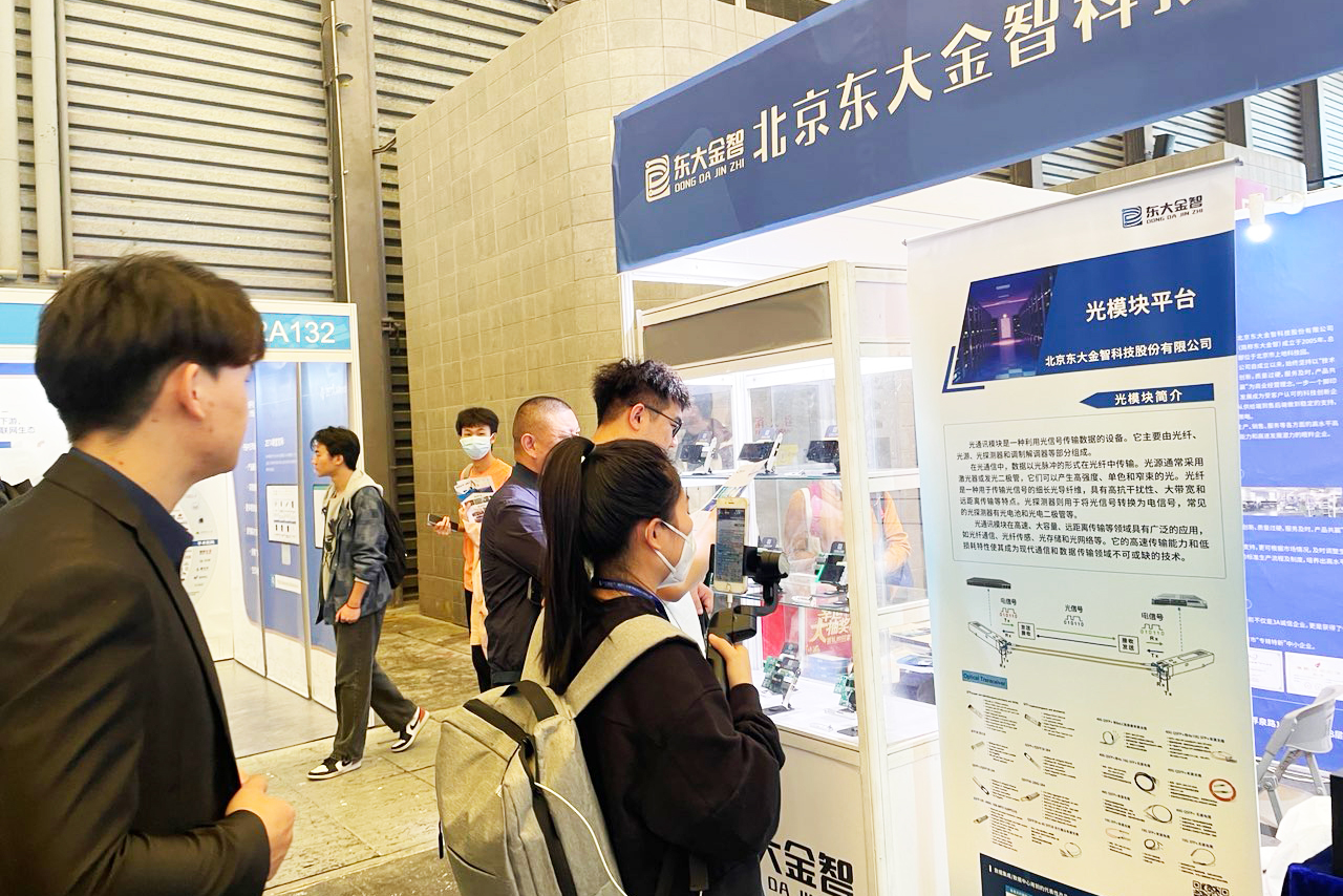 展会直播人员经过北京东大金智展位时被展览物品吸引,在直播间让大家观看各个展品及对相应产品说明,并且着重介绍了东大金智的光模块平台,让广大无法到来现场的网友,更加贴切地感受到现场氛围,仿佛置身来到了会展现场。